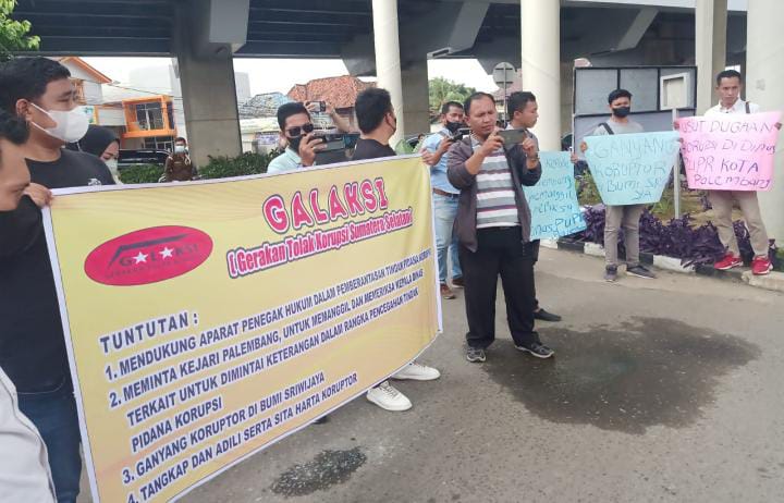 Dasri Nurhadi S.Sos M.Si Koordinator aksi di dampingi Ejak dan Samiun AB Koordinator Lapangan mengatakan,”hasil investegasi Galaksi Sumsel di lapangan menemukan dugaan indikasi penyalagunaan wewenang dan jabatan yang mengarah pada indikasih tindak pidana KKN di beberpa program dan kegiatan satuan kerja di wilayah Provinsi Sumsel,”Ujarnya.
