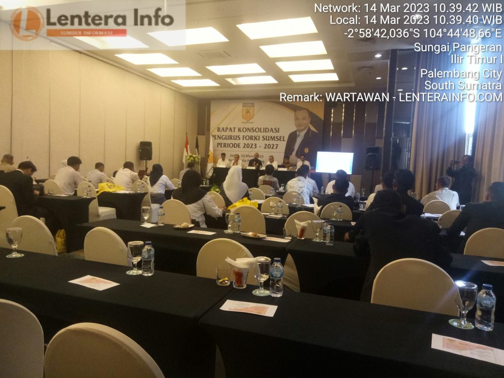 Rapat Kordinasi Pengurus Provinsi FORKI Sumsel digelar di Hotel Arista Palembang, Selasa (14/3/2023).