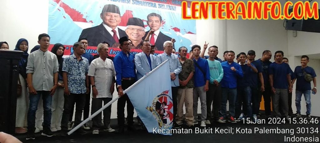 Lenterainfo.com – Deklarasi Relawan Sedulur POBRAN (Prabowo dan Gibran ) Provinsi Sumsel di Hotel Princes Senin, 15 Januari 2024. Hadir Ketua Umum Sedulur POBRAN Supriyadi, Panitia Pelaksana Deklarasi Mukri AS Pemulutan, S.Sos.I, MSi, Ketua TDK Prabowo-Gibran Provinsi Sumsel Mawardi Yahya.