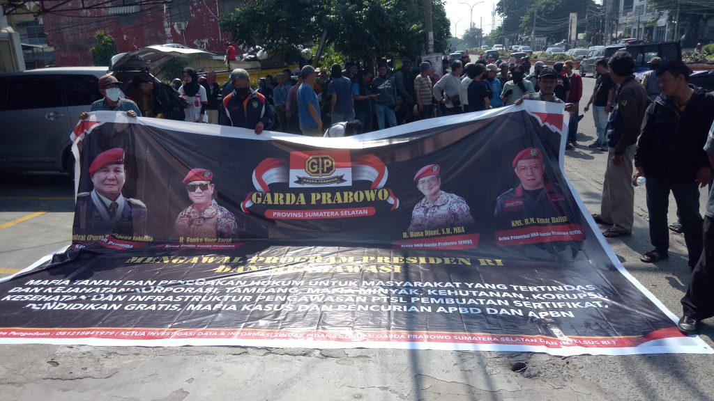 Lenterainfo.com – Ratusan Massa Garda Prabowo Sumsel yang di komandoi Ketua Investigasi Garda Prabowo Sumsel Feriyandi SHDM., di dampingi Rahmad Hidayat, Rahmad Sandy,Sukirman,Isa, selaku Kordinator Aksi dan pengurus Garda Prabowo Sumsel, aksi tersebut di selenggarakan di pengadilan Tinggi pada hari senin tgl 28 oktober 2024 bertempat di halaman kantor Pengadilan tinggi Palembang jl jend sudirman km 4,5 Palembang,