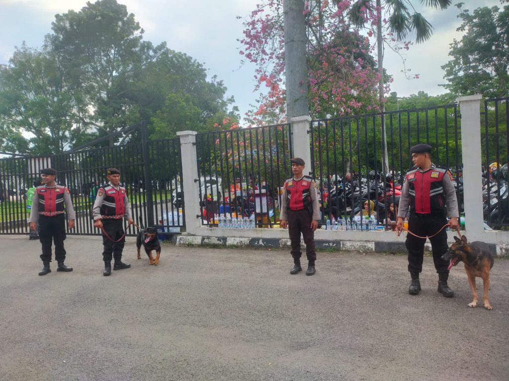 Dua ekor anjing pelacak dari Unit K9 bersama lima personel yang dipimpin Ka Tim K9 Aipda Saripudin diterjunkan untuk menyisir area strategis stadion, mulai dari pintu masuk penonton, tribun utama, hingga ring luar. Pemeriksaan dilakukan secara cermat untuk memastikan tidak ada benda berbahaya atau ancaman yang dapat mengganggu jalannya pertandingan.